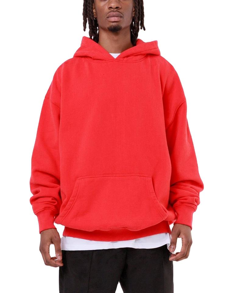 Sudadera con Capucha Roja Extra Grande sin Cordones de Algodón Pesado de Alta Calidad, Sudaderas con Capucha Rojas 100% Algodón para Hombre