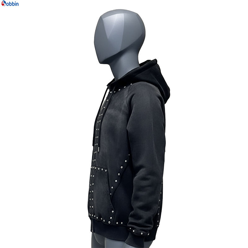 Sudadera con Capucha de Algodón Grueso de Alta Calidad con Cierre, Logotipo Personalizado, Último Diseño, Térmica, con Pedrería, Lavado Ácido Decolorado, Talla Grande