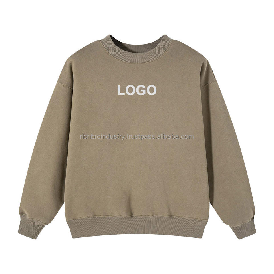 Sudaderas con capucha de cuello redondo de peso pesado de alta calidad para hombres Sudaderas con estampado de logotipo personalizado en temporada de otoño Tela Plain Dyed Technics
