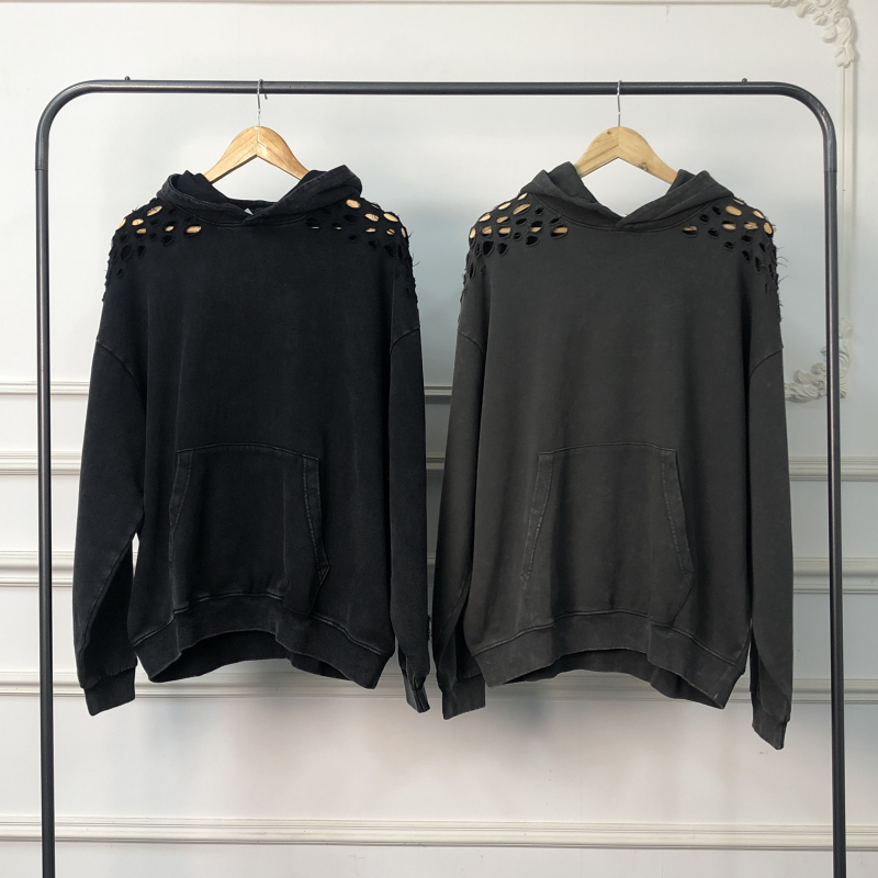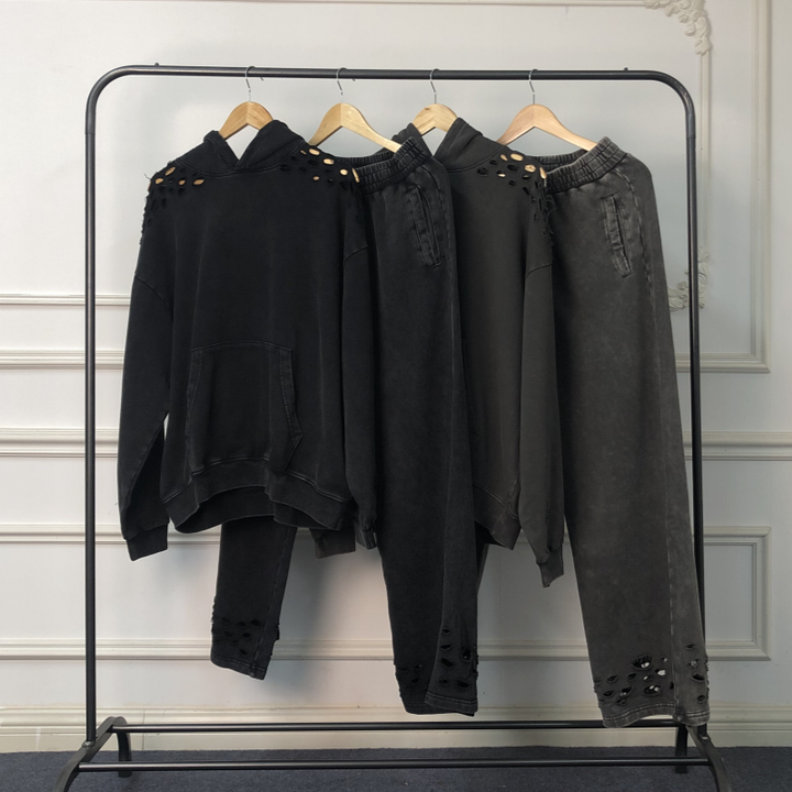 Ropa Urbana de Alta Calidad, Estilo Desgastado, Sudadera con Capucha y Pantalones Deportivos Holgados, Lavado Ácido, Personalizable