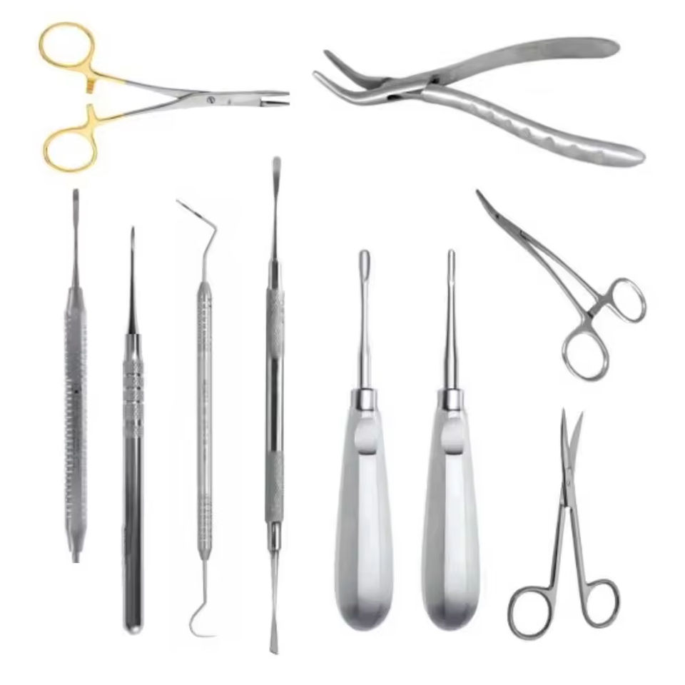 Juego de 11 Instrumentos Quirúrgicos Manuales de Acero Inoxidable de Alta Calidad y Alta Demanda para Cirugía Plástica y Cirugía General