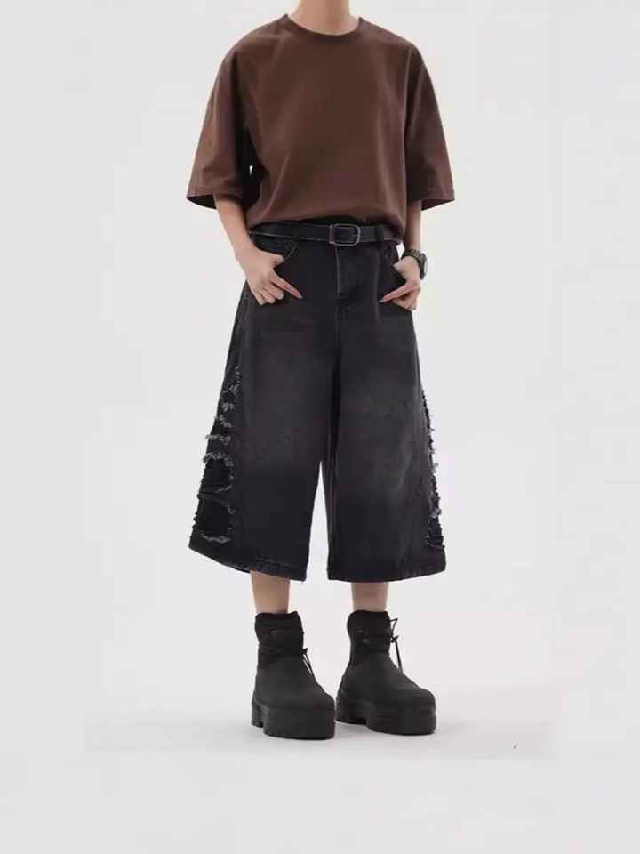 Alta calidad High Street Eco-Friendly Transpirable Lavado Faded Denim Jort Personalizable Baggy Men's Shorts Verano