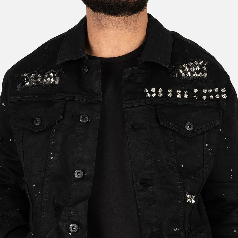 Chaquetas vaqueras para hombre de estilo callejero de alta calidad 100% algodón con logotipo frontal de diamantes de imitación Servicio OEM Precios bajos para el invierno