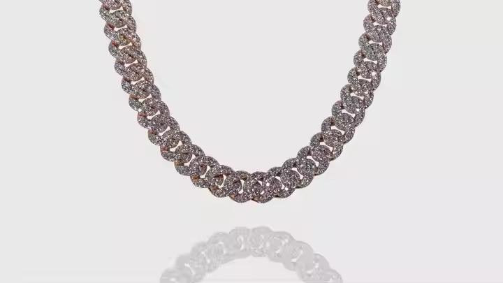 Cadena Cubana de Alta Calidad Estilo Hip Hop Rapper en Oro Rosa con Diamantes y Detalles en Oro Rosa, Regalo para Él