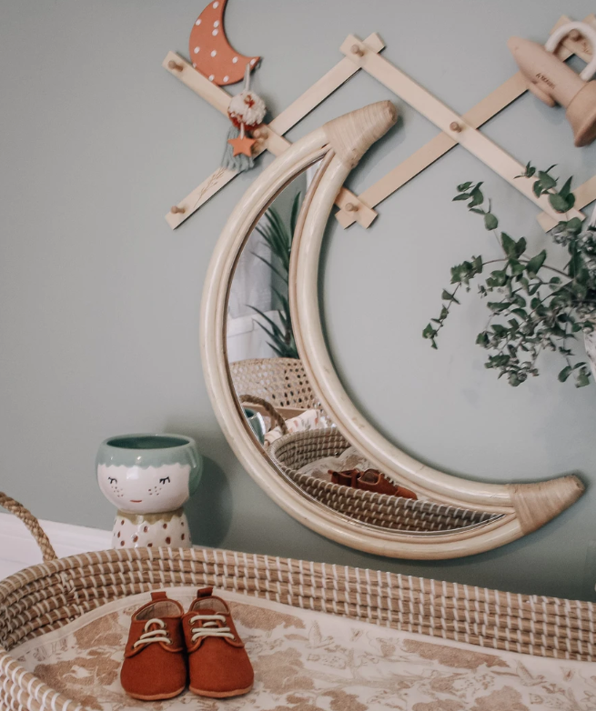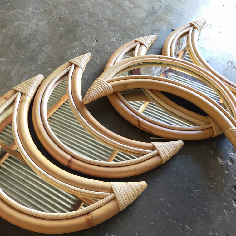 Alta calidad decoración del hogar ratán Luna forma espejo de pared artesanías decoración del hogar para la venta al por mayor
