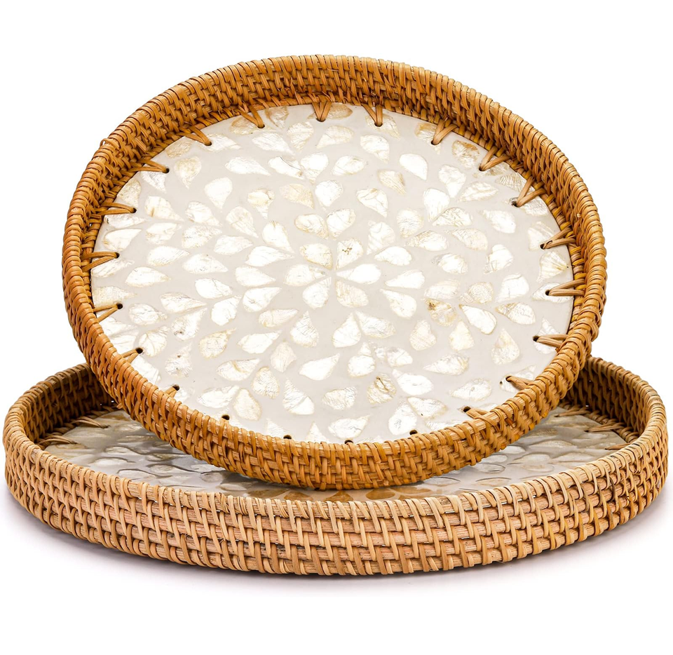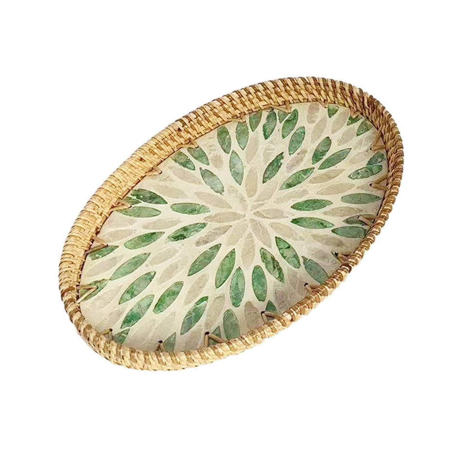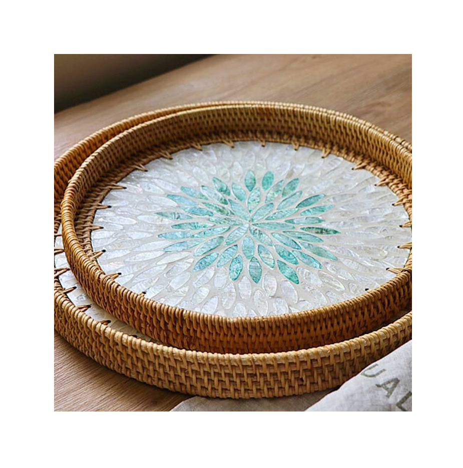 Bandeja de Ratán de Alta Calidad para Decoración del Hogar, Combinada con Madreperla, Bandeja para Servir Alimentos, Juego de Bandejas de Cocina Hechas a Mano