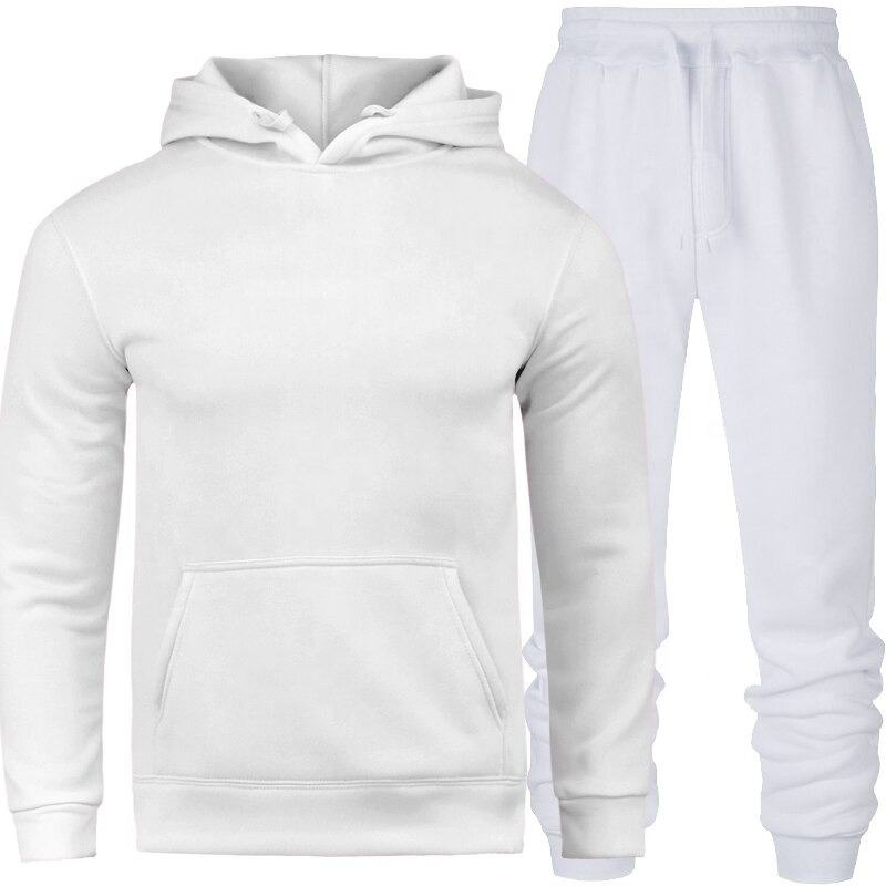 Traje deportivo de alta calidad para hombre, chándal liso con capucha, conjunto de sudadera en blanco, entrenamiento, sanzug