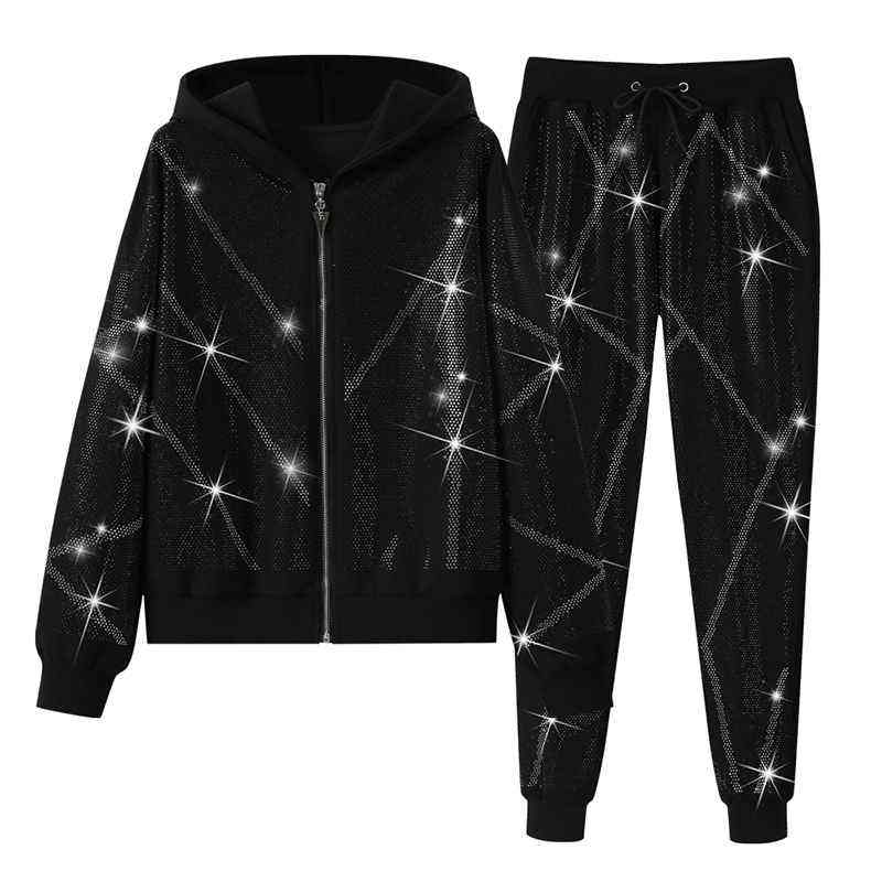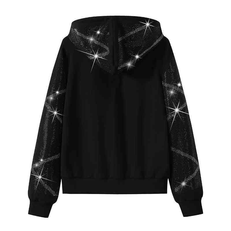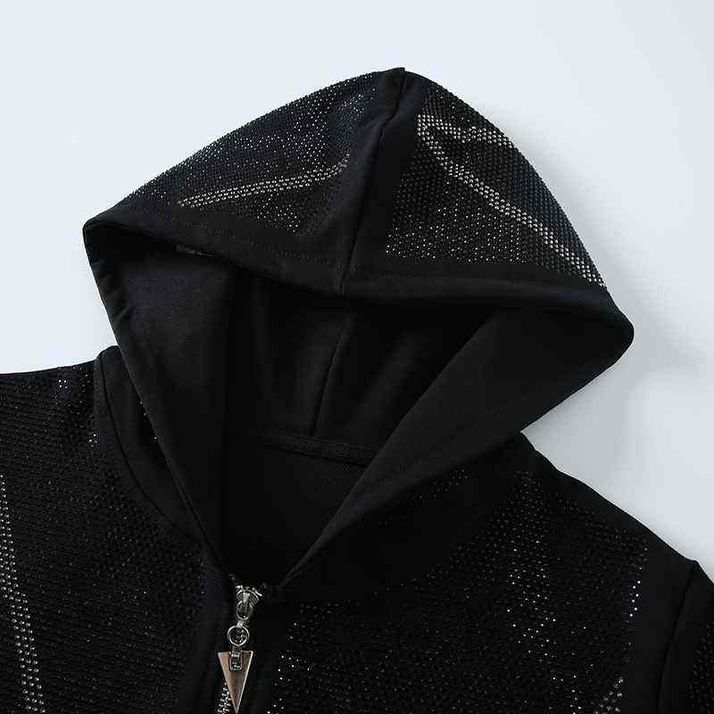 Chándal con capucha de alta calidad con cremallera de diamantes de imitación personalizado ropa de invierno al por mayor de los fabricantes