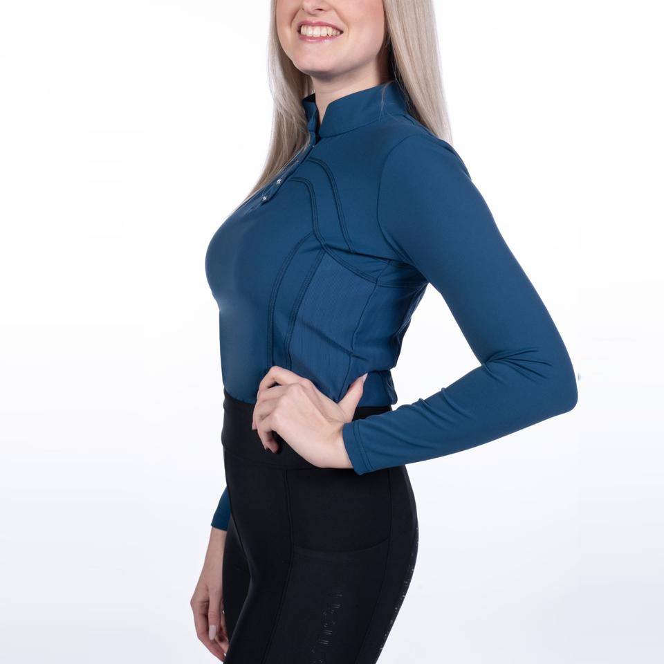 Cómoda camisa de equitación para mujer, ropa deportiva personalizable, ropa ecuestre, venta al por mayor, camisetas de espectáculo de equitación, Top de capa base