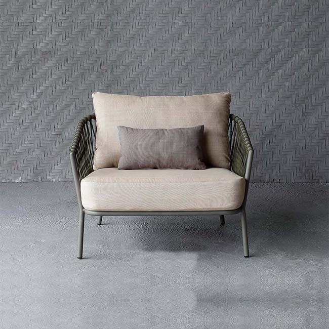 Muebles de exterior de cuerda tejida para sofá, Base de aluminio de diseño simple y elegante, alta calidad, gran oferta, nuevo diseño