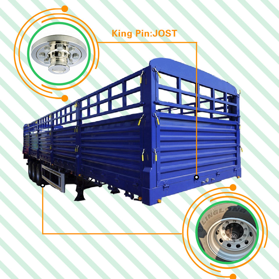 Semirremolque de Plataforma con Barandas para Transporte de Animales y Carga de 60/80/100 Toneladas, 3 Ejes, Alta Calidad, Venta Caliente