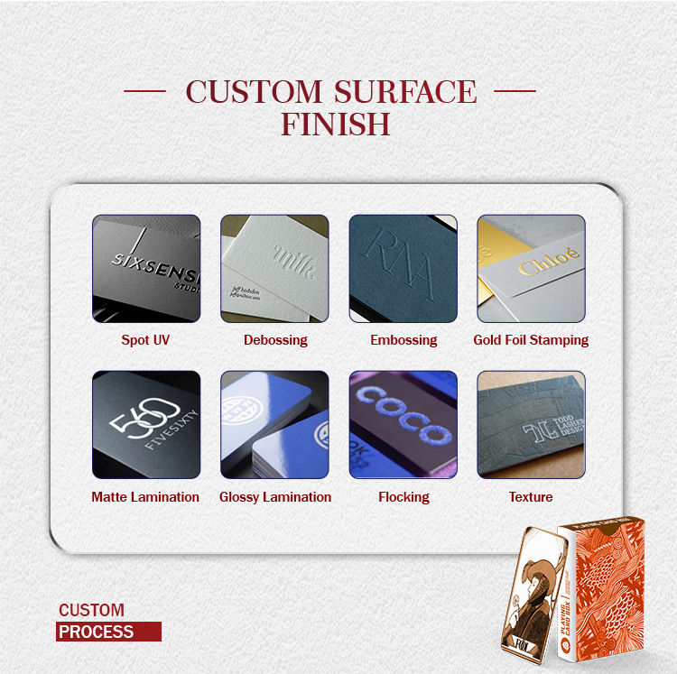 Acabado de superficies:4C/UV/Laminado/Barniz/Estampado en Caliente/Grabado/Impresión