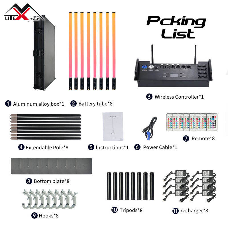 Tubo de Luz LED RGBWA IP65 de Alta Calidad, 360 Píxeles, con Control DMX, Alto Brillo, Alimentado por Batería, 72W, Temperatura de Color 2700-10000K