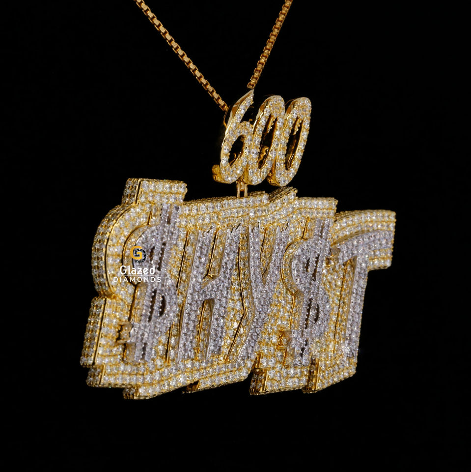 Colgante de oro amarillo de 10 quilates personalizado de alta calidad con diamante cultivado en laboratorio Iced Out Brilliant Cut VVS Clarity Hip Hop Name para fiestas