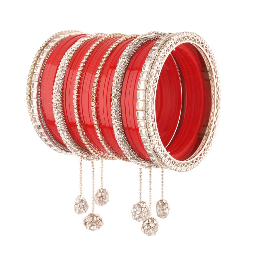Característica:Adornado con Kundan, cristales, con brazaletes de acrílico liso