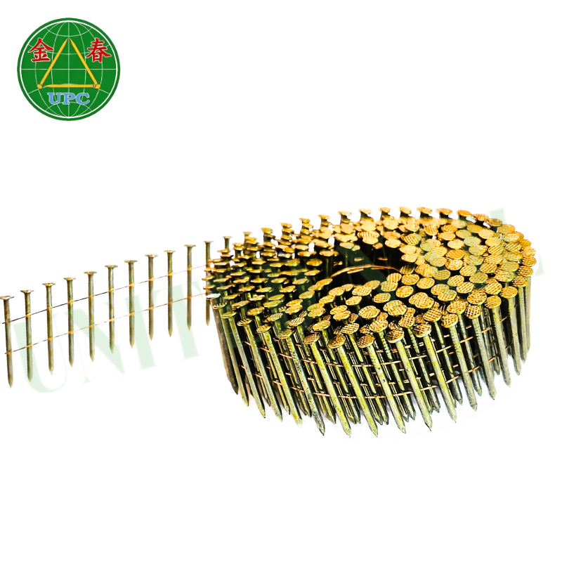 Clavos de bobina a granel industriales de alta calidad 1-1/4 pulgadas Zinc amarillo-cromato plateado acero vástago liso de larga duración plano/a cuadros