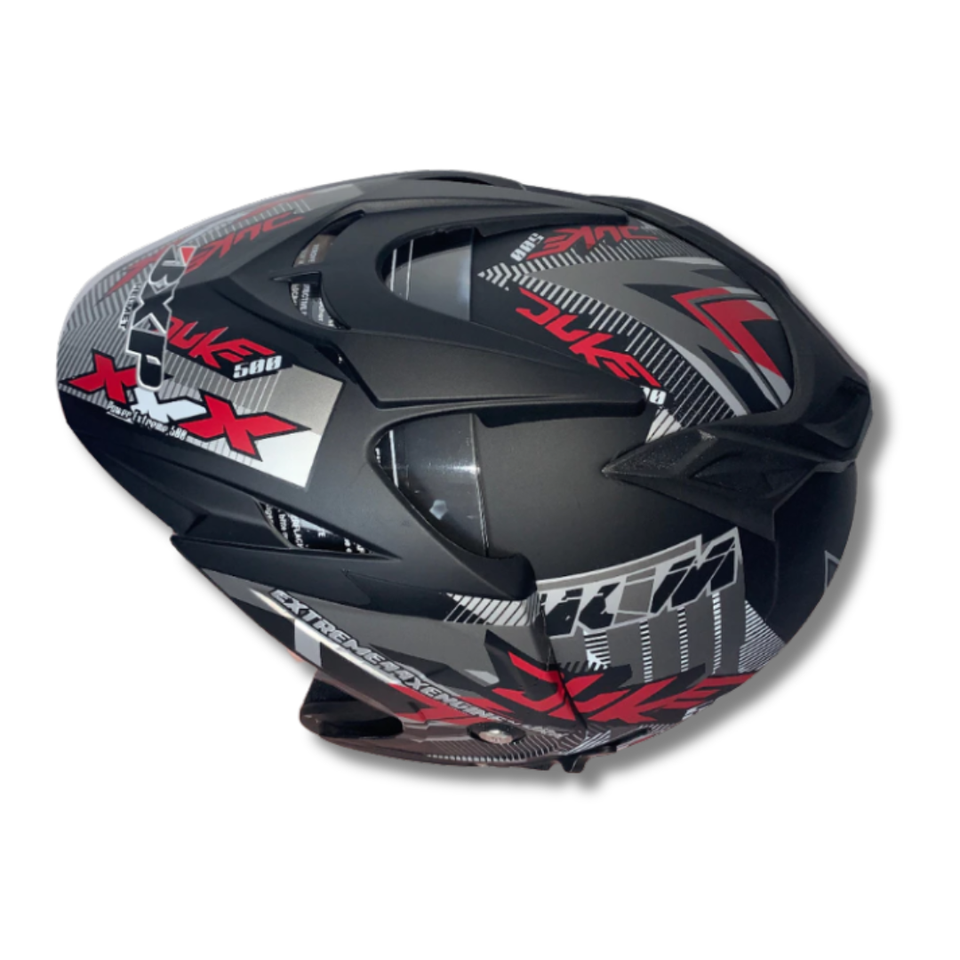 Casco de Motocicleta Abierto JP7 Juke Rojo Mate de ABS de Alta Calidad | Visera Doble BXP Ligera con Certificación SNI para Adultos