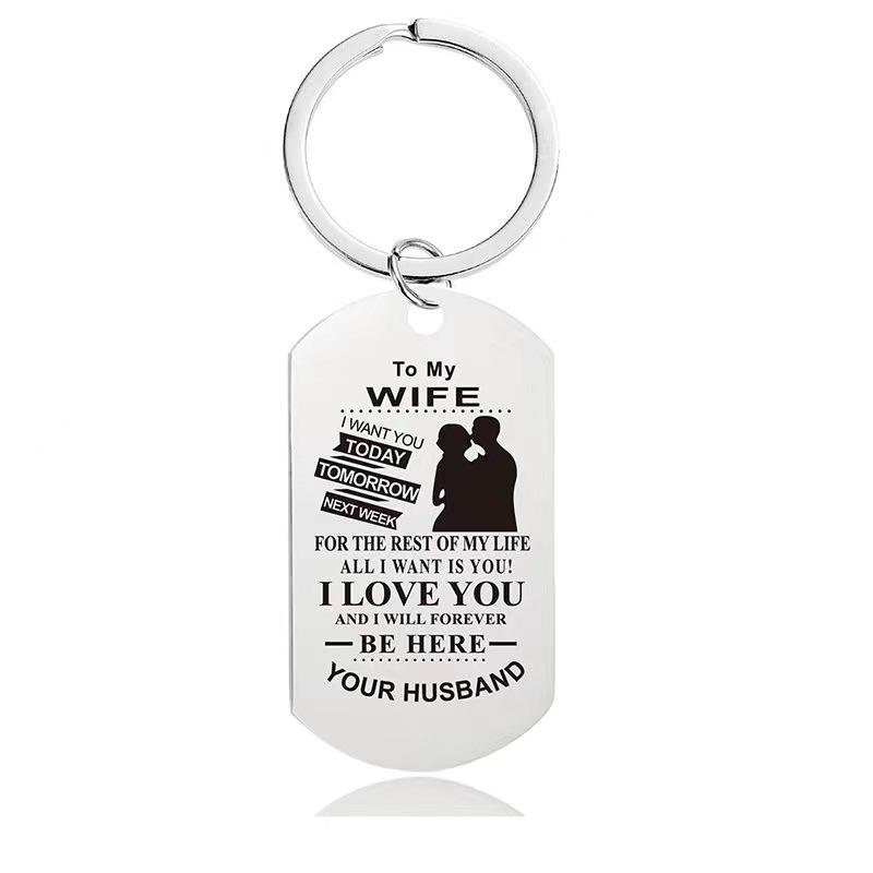 LLavero de alta calidad con estampado de letras de acero inoxidable, cadena de letras con palabras personalizadas, anillos, llavero para su regalo de recuerdo de negocios