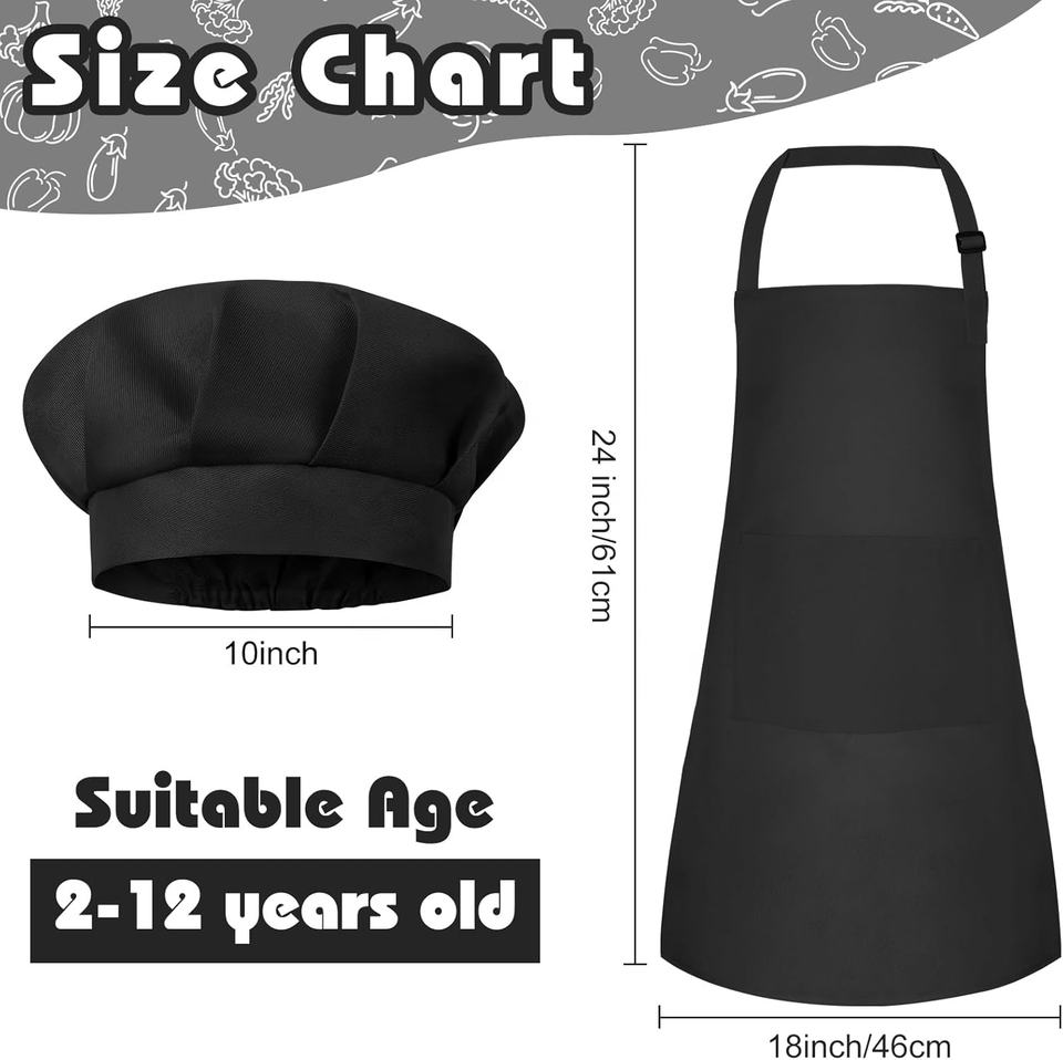 Delantal de Chef para Niños de Alta Calidad con Correa Ajustable y 2 Bolsillos, Delantales Infantiles con Logotipo Personalizado para Limpieza de Cocina