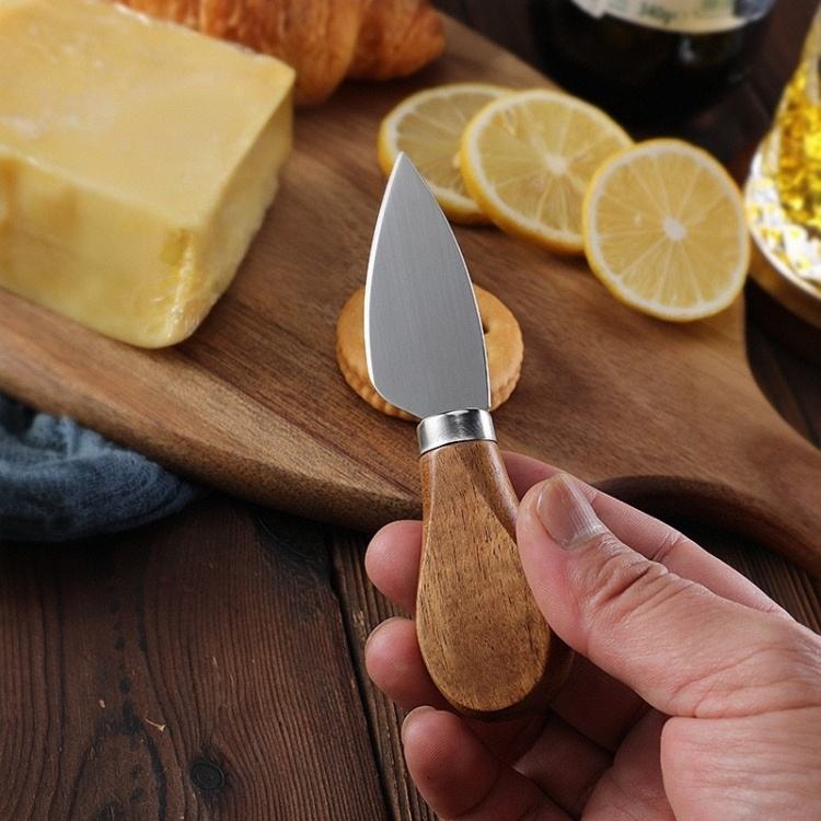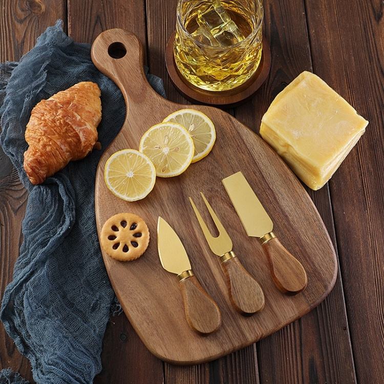 Juego de Cuchillos para Queso de Alta Calidad, Multifuncional, de 3 Piezas, con Mango de Madera, con Tabla de Quesos de Madera