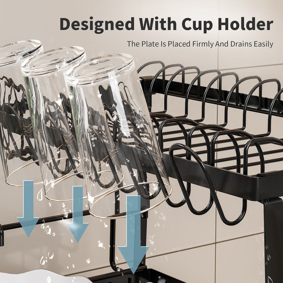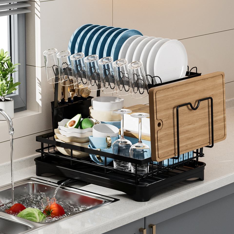 Estante de secado de ollas y sartenes de cocina de alta calidad, platos de encimera, escurridor de platos con soporte para cubiertos extraíble