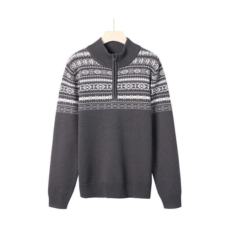 Jersey de punto de alta calidad, suéter con patrón de diseñador de lana, suéter con cremallera para hombre 1/4
