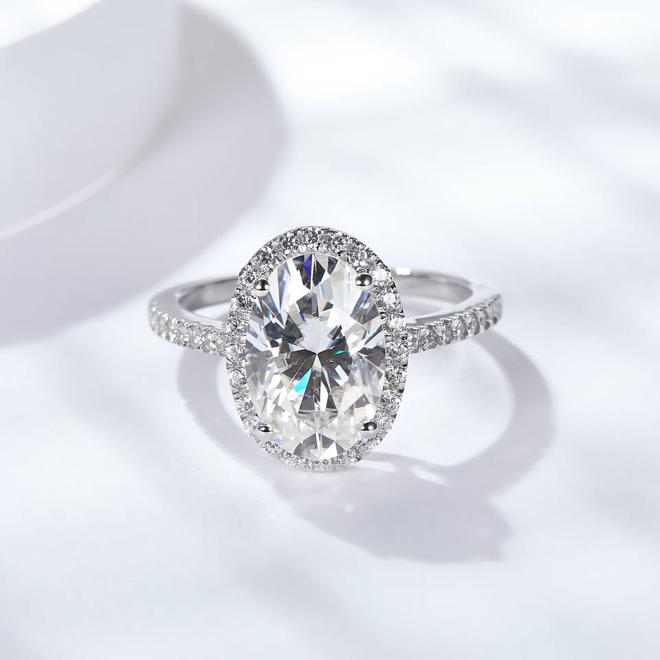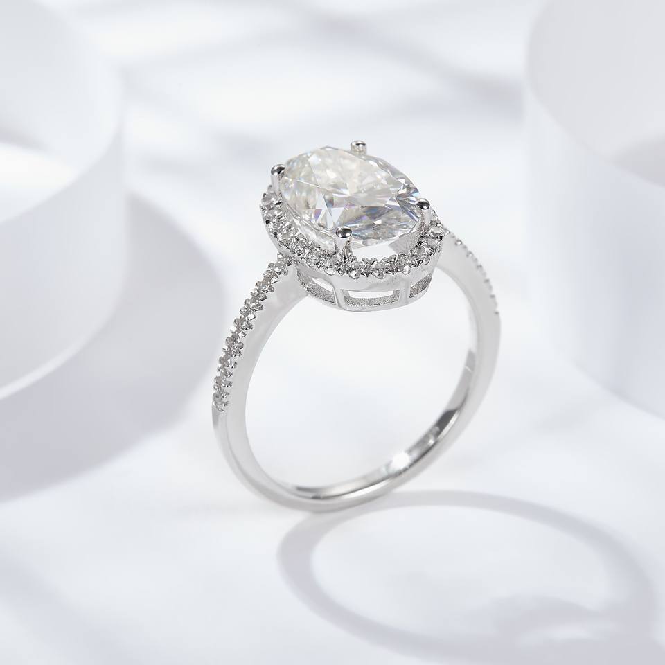 Anillo de Compromiso de Plata 925 Clásico con Diamante Ovalado de Alta Calidad Creado en Laboratorio, Certificado IGI, Joyería Fina