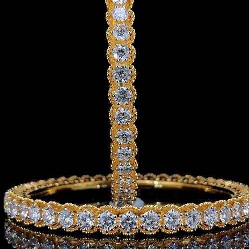 Brazaletes de diamantes cultivados en laboratorio de alta calidad, joyería nupcial de corte redondo, venta al por mayor, brazalete de eternidad de oro de 14KT, diamantes brillantes redondos