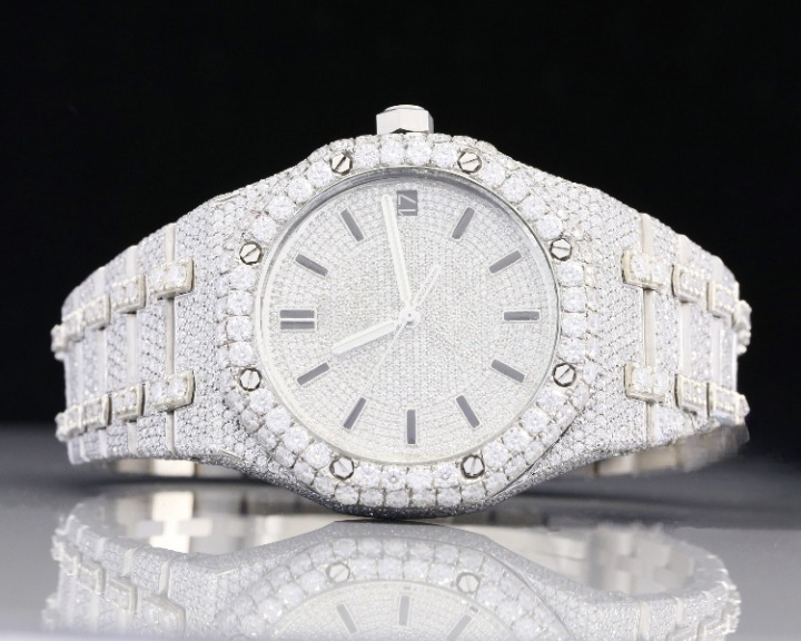 Reloj de diamante de corte redondo cultivado en laboratorio de alta calidad, esfera de cristal analógico, joyería de Hip Hop, busto de lujo, venta al por mayor, fabricante personalizado