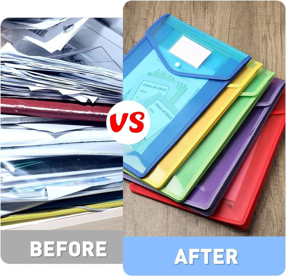 Carpeta de Archivos de Plástico A4 de Alta Calidad con Bolsillo para Etiquetas y Botón a Presión, Carpeta Expandible para Documentos, Carpetas Transparentes para Documentos