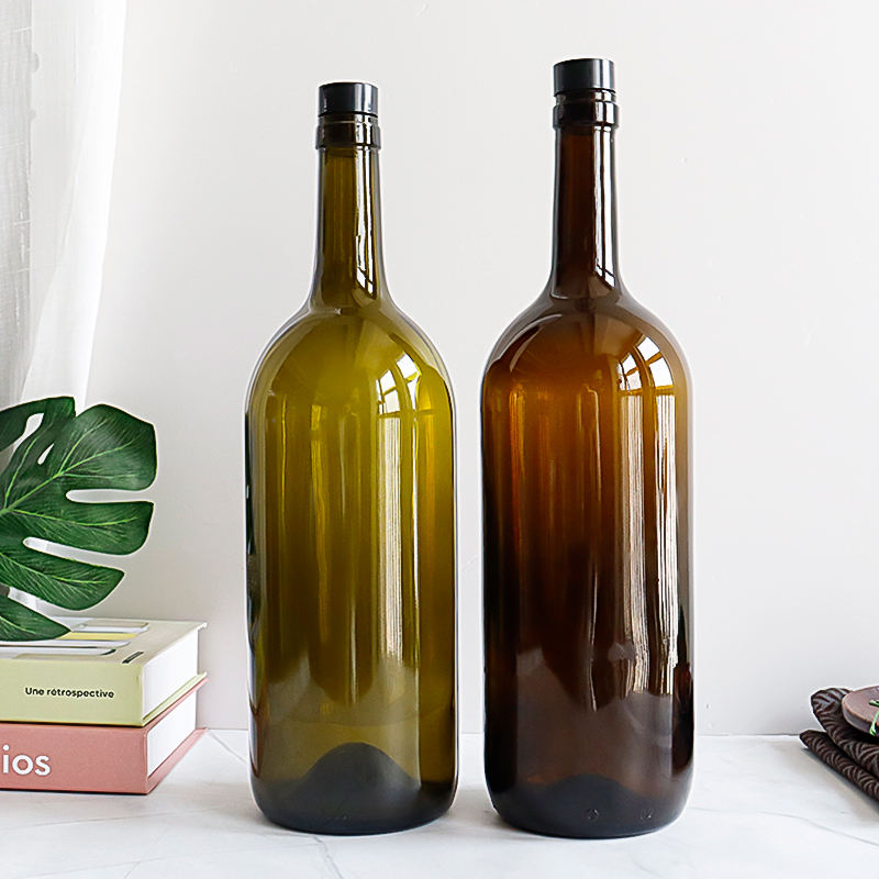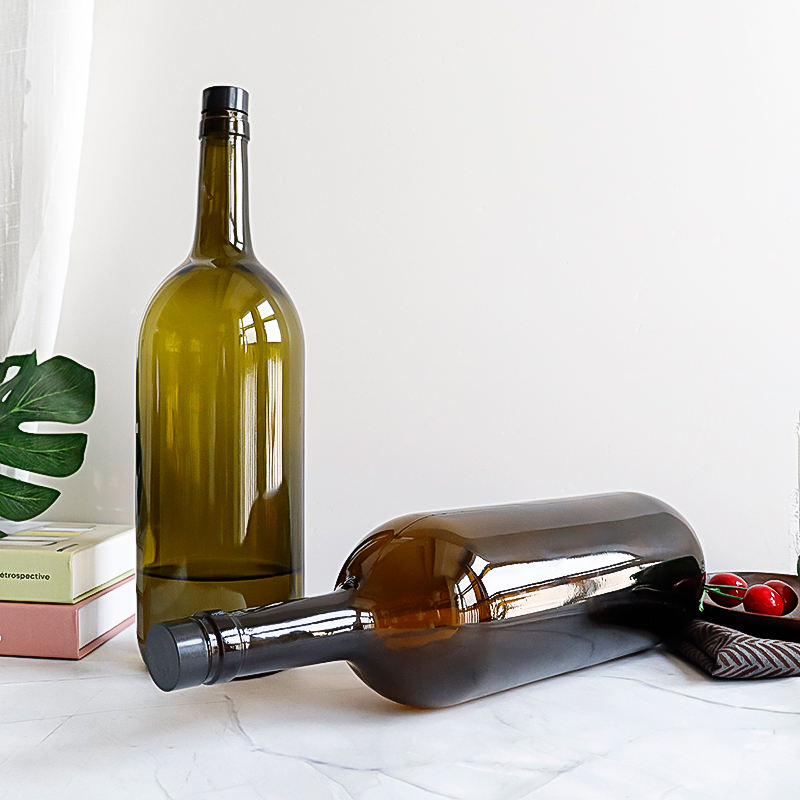 Botella de Vidrio para Vino Tinto de Alta Calidad y Gran Capacidad de 1500 ml, Color Ámbar Verde, con Corcho