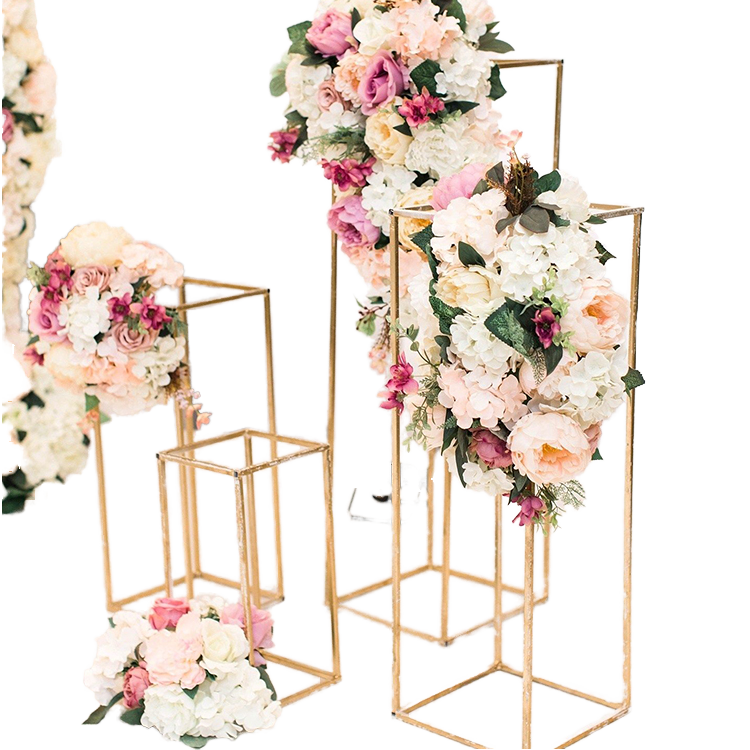 SPX SPX001 Soporte de Flores Rectangular de Metal Dorado de Alta Calidad para Bodas, Centro de Mesa para Fiestas