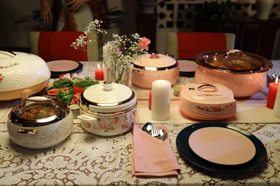 Calentador de alimentos de acero inoxidable Rosa grande de alta calidad, cazuela de Color del fabricante, utensilios de cocina de vidrio para cocinar