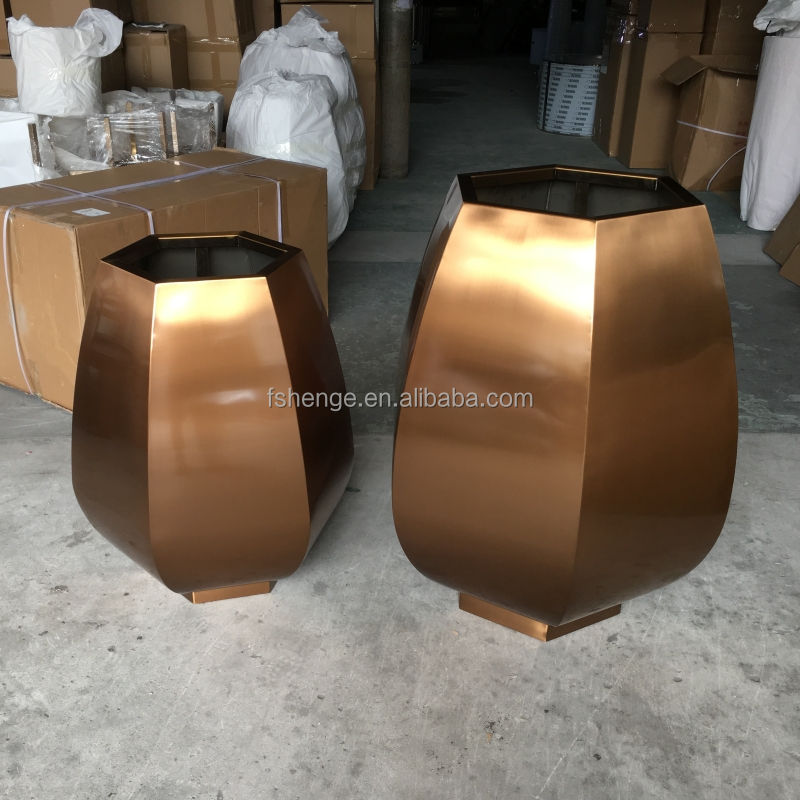 Maceta de metal cromado plateado de acero inoxidable de gran tamaño de alta calidad para Decoración