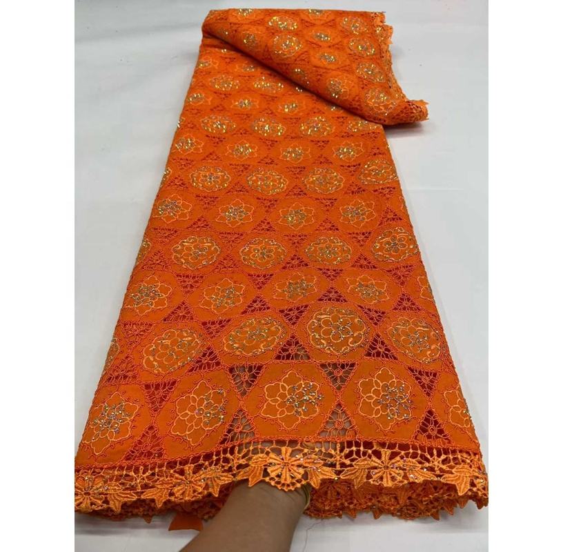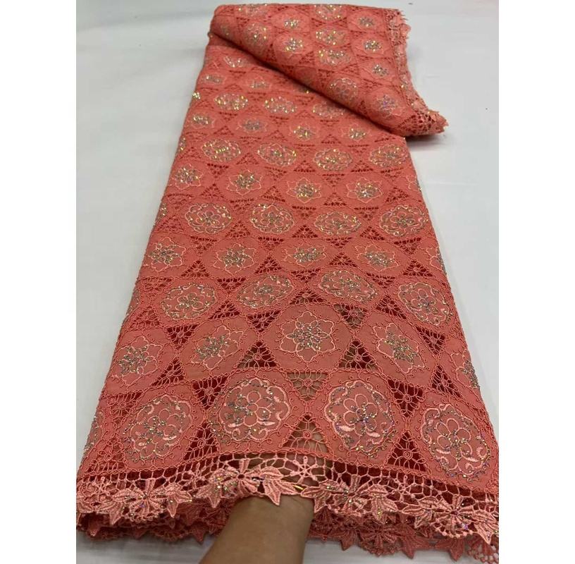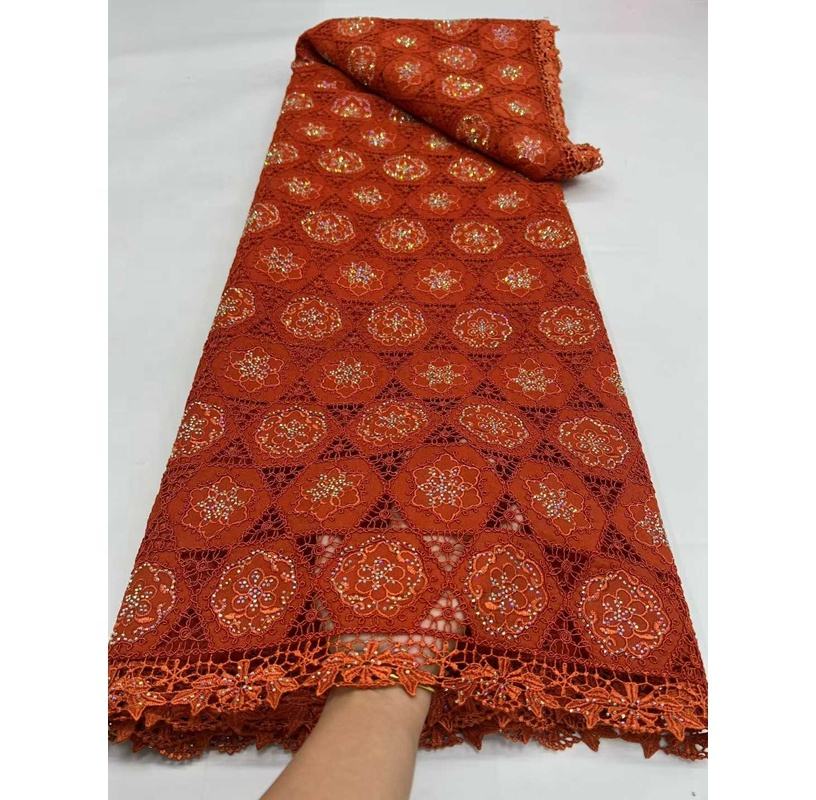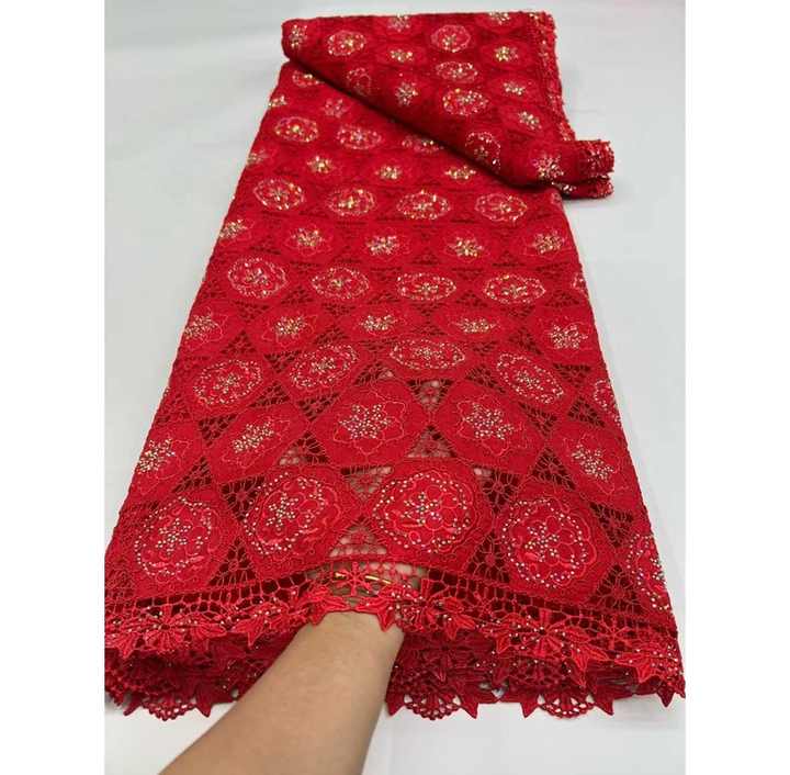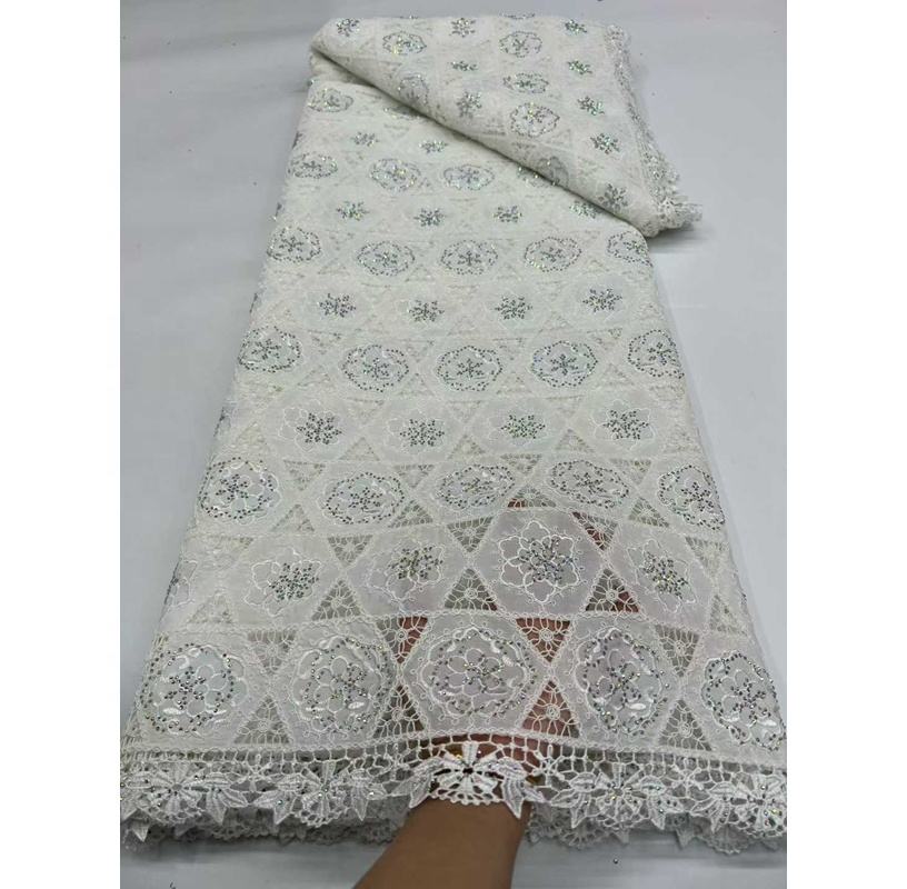 Tela de Encaje con Bordado Africano de Alta Calidad, Diseño Moderno, Poliéster, Pedrería Soluble en Agua, Guipur, 5 Yardas