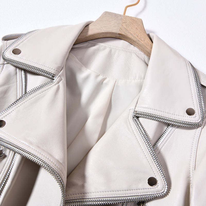 Chaquetas de Cuero de Alta Calidad para Mujer, Chaqueta de Cuero Corta Blanca para Mujer, Chaqueta de Cuero Elegante para Mujer de Alta Calidad