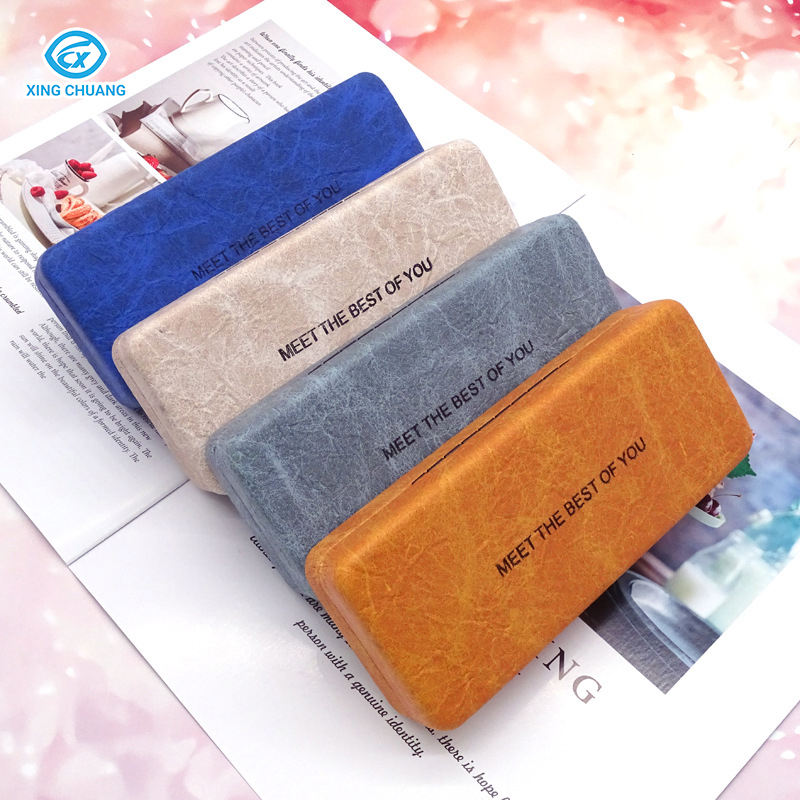 Estuche rígido óptico de cuero de alta calidad para gafas de sol de mujer con logotipo personalizado Estuche para gafas de sol antipresión con forma rectangular portátil