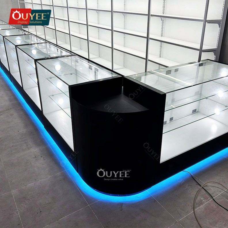 Estante Led de alta calidad Shisha Display Glass Counter Estantes Gabinete para cigarros Tienda de humo Iluminación Tienda de humo Personalizada