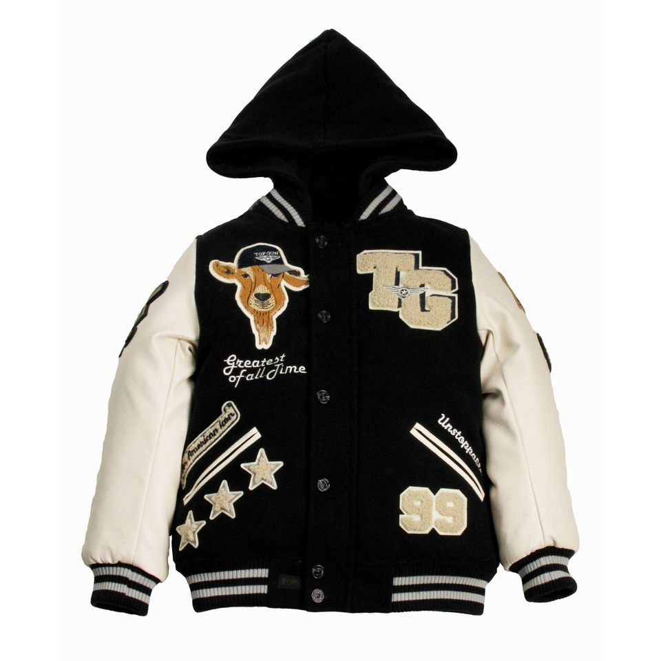 Chaquetas Letterman de alta calidad Cuerpo de lana Mangas de cuero Ropa de invierno Elegante y elegante Chaqueta universitaria de béisbol Letterman Varsity