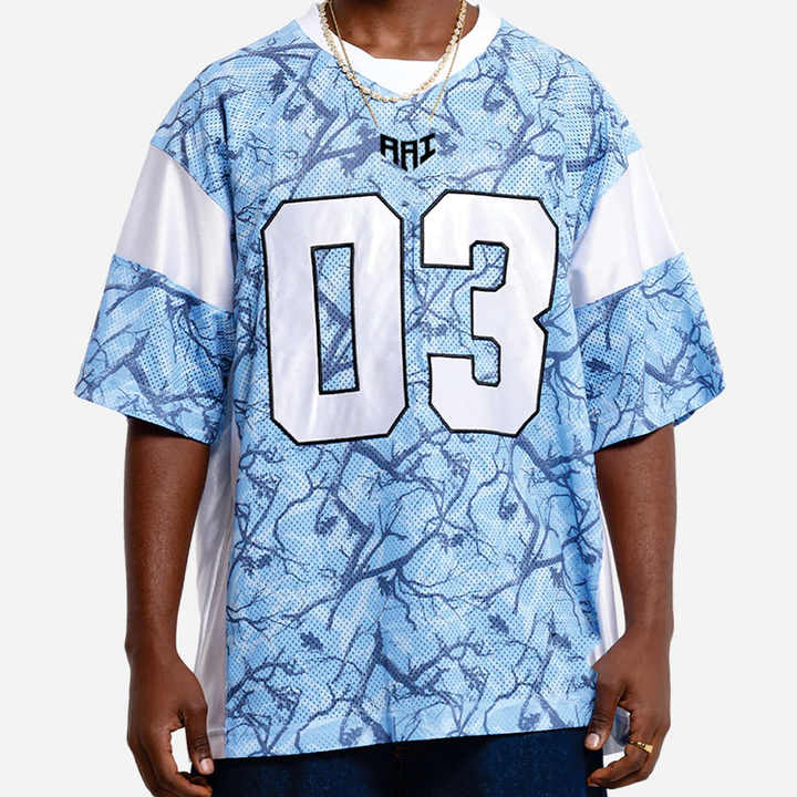 Jersey de Fútbol Americano de Alta Calidad con Diseño Sublimado Azul Claro, Estilo Urbano Holgado para Hombre, Ropa Deportiva Personalizada, Proveedor OEM