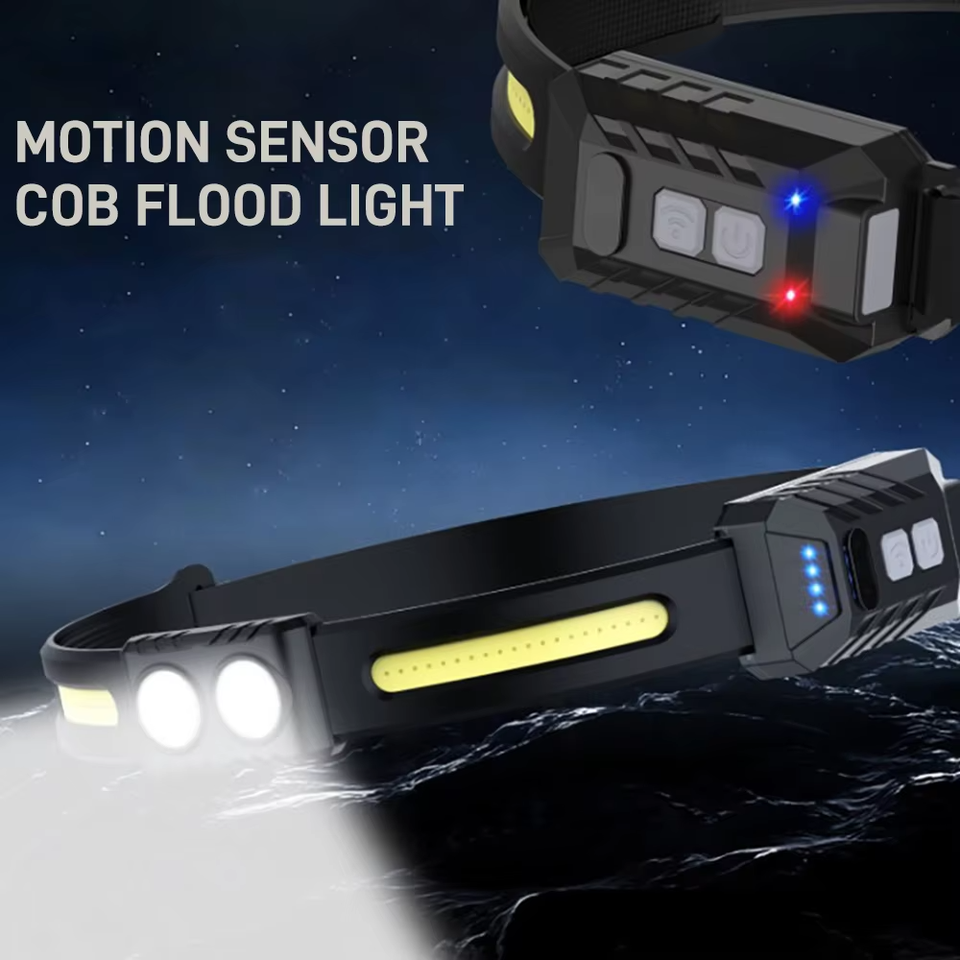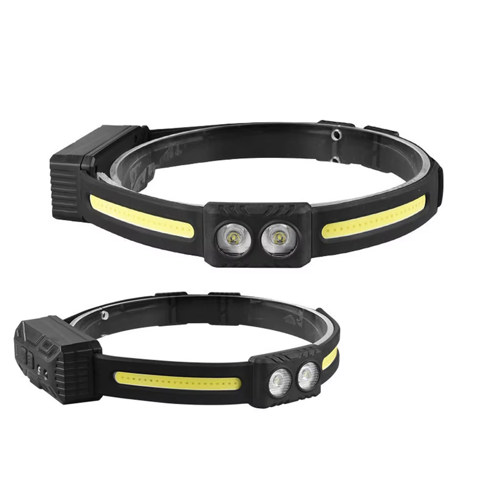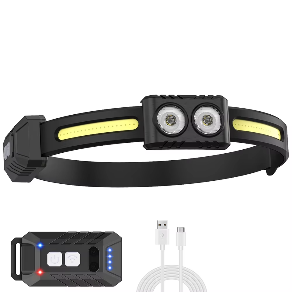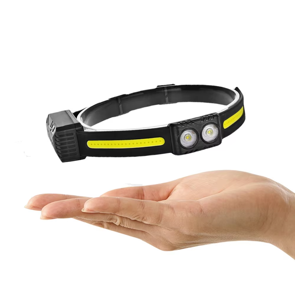 Faro LED recargable ligero de alta calidad con 363 lúmenes IP44 Sensor de movimiento impermeable Correa de cabeza fija Luz dual