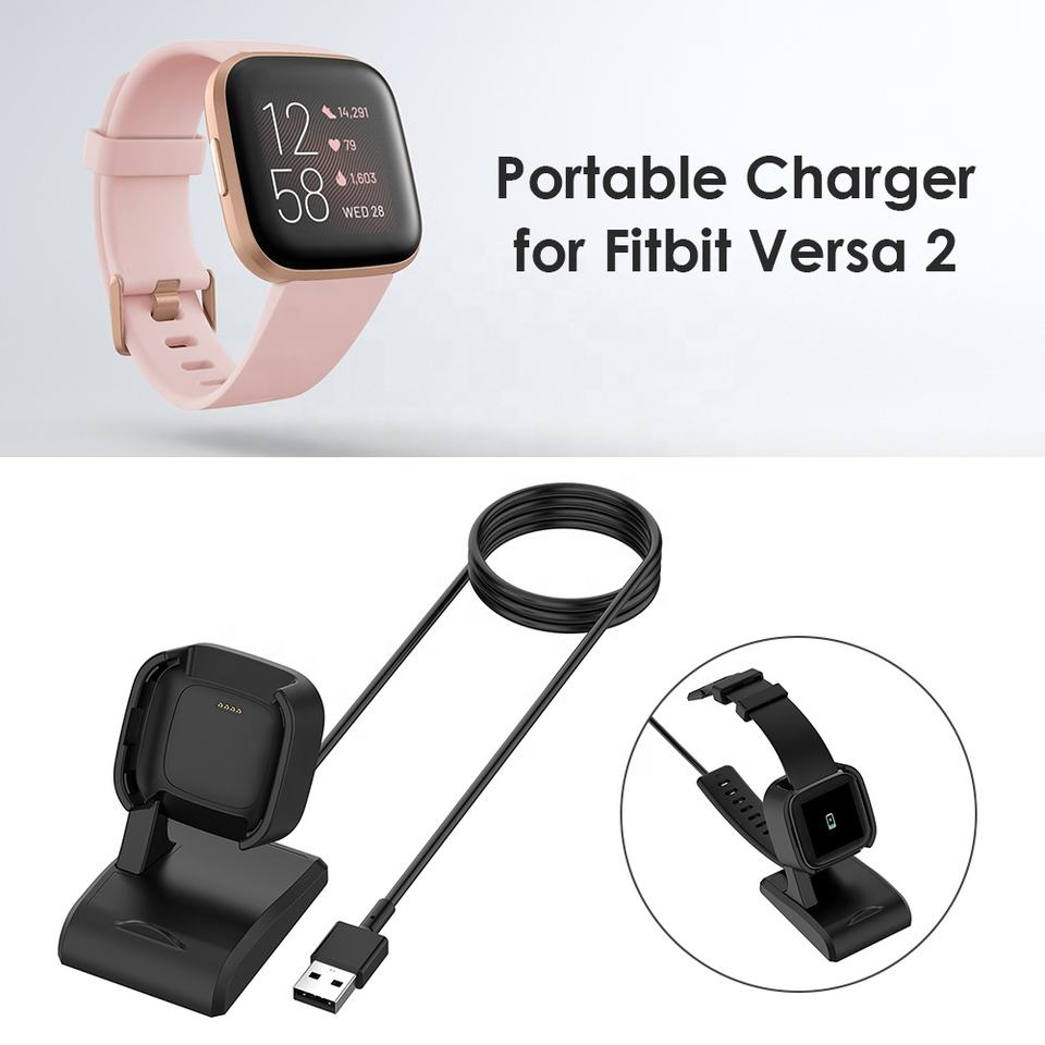 Base de cargador larga de alta calidad, soporte de cargador de reloj Fitbit antideslizante, Cable de carga de repuesto apto para reloj inteligente Fitbit Versa 2