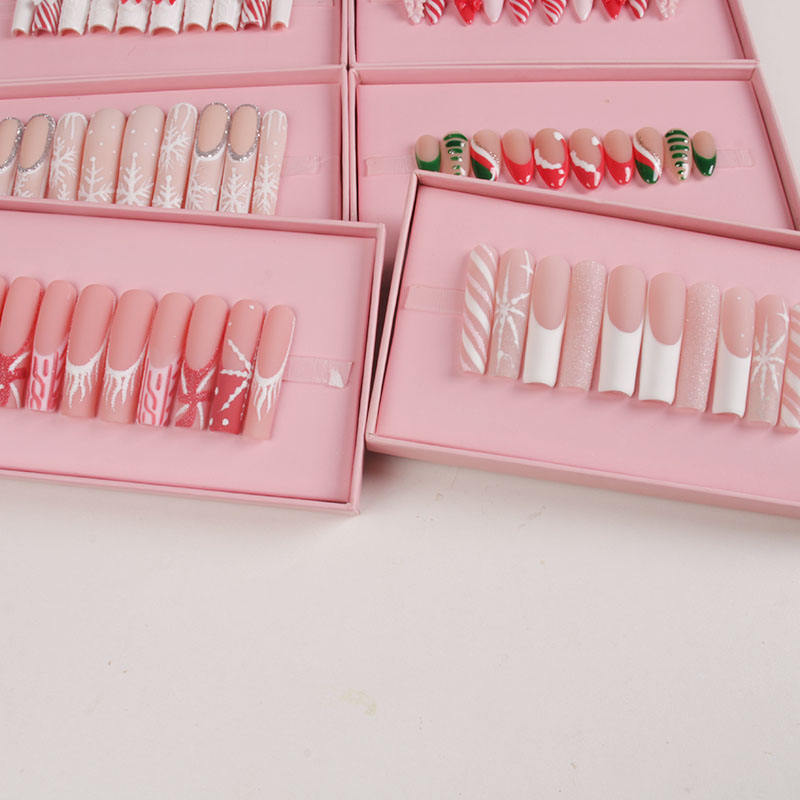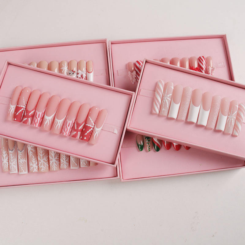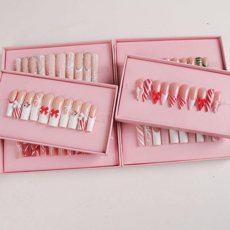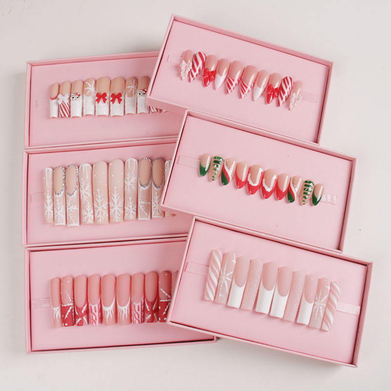 Uñas Postizas de Alta Calidad con Diseño Navideño, Uñas Bonitas para Año Nuevo, Hechas a Mano, Cobertura Completa, Arte de Uñas 3D, Pegamento para Uñas