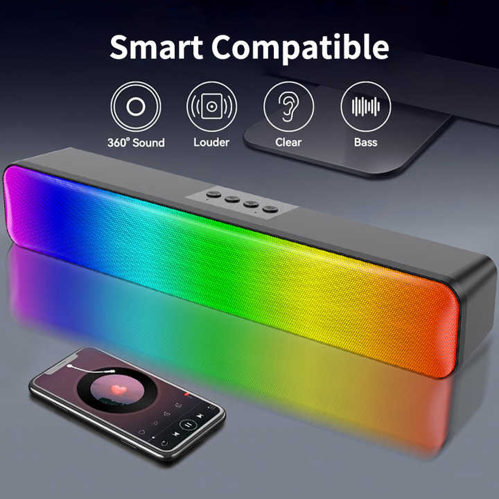 Barra de sonido de iluminación RGB múltiple de escritorio de precio bajo de alta calidad Bluetooth inalámbrico sistema de altavoces dobles de 40mm