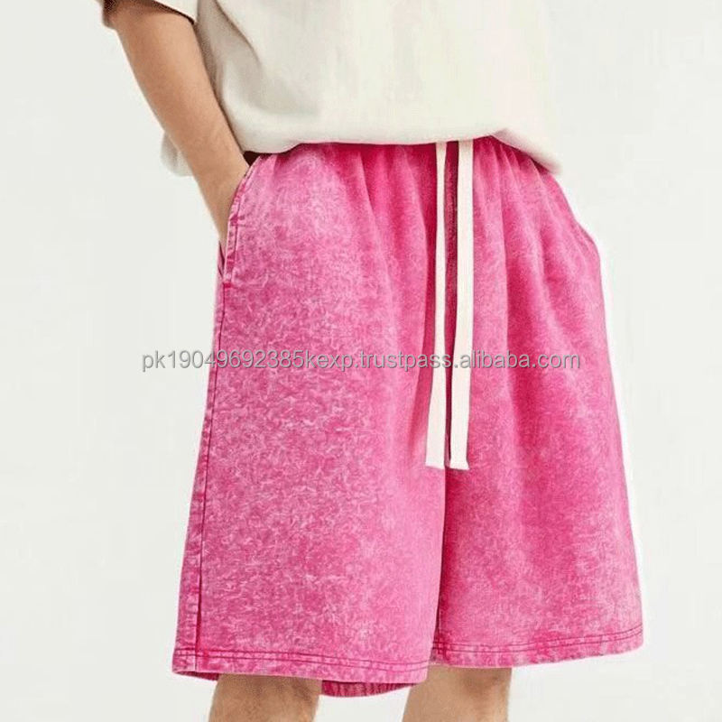 Pantalones cortos de gran tamaño de marca de lujo de alta calidad con cordón elástico en la cintura de algodón informal lavado de diseñador Vintage para hombres