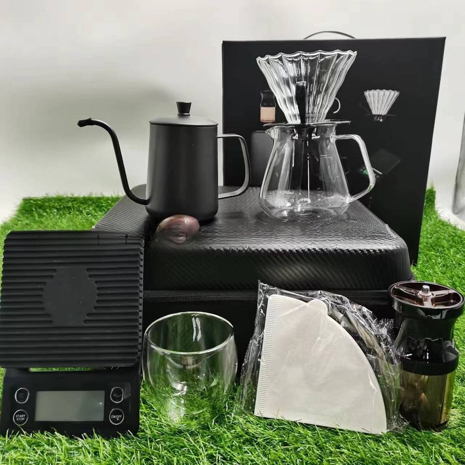 Juego de Regalo de Café de Lujo de Alta Calidad, Molinillo, Cafetera Manual, Filtro de Goteo de Vidrio, Regalo de Navidad para el Hogar