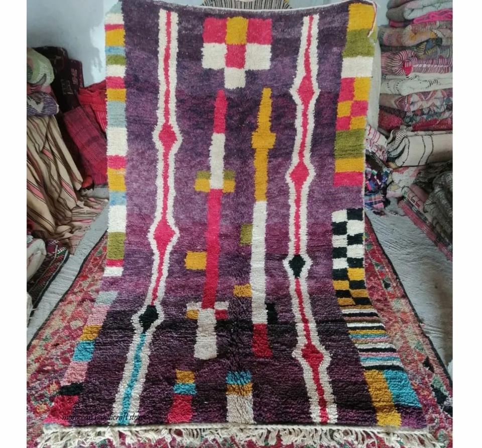 Alfombra de Lana Hecha a Mano de Alta Calidad, Alfombra de Estilo Marroquí Berber Morada, Alfombra Boho Geométrica Colorida para Decoración del Hogar, MOQ 1 P