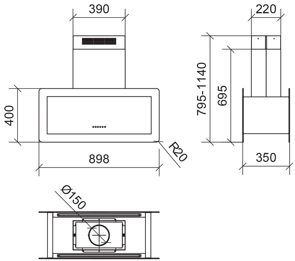 Color:St/acero con vidrio negro/blanco