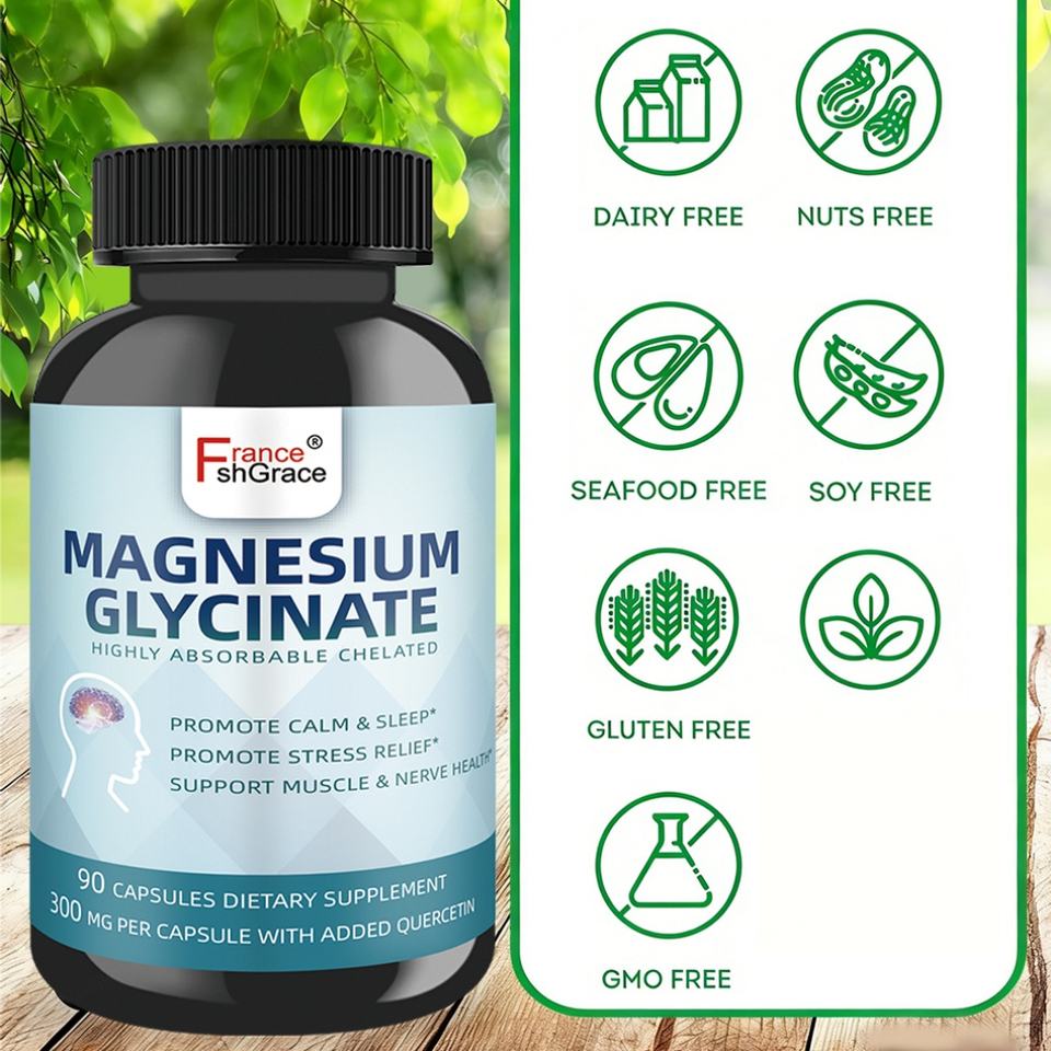 Cápsulas de Glicinato de Magnesio de Alta Calidad para Dormir, Calmar, Aliviar los Nervios y el Estrés en Adultos, Suplemento de Glicinato de Magnesio