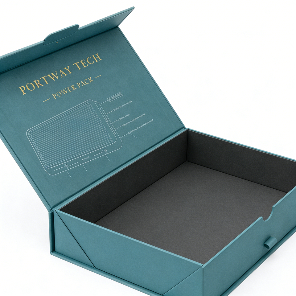 Caja Rígida Magnética Plegable de Alta Calidad con Laminado Brillante/Mate y Grabado en Relieve para Empaque de Auriculares y Accesorios Electrónicos